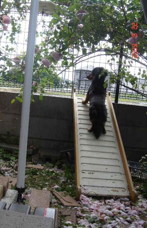 後半、物置の裏に何かを発見したようで(多分とかげ)、どくだみを踏みつけ踏みつけ追いかけまわしていました。