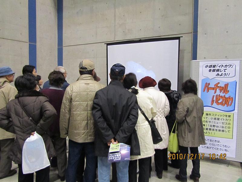 バーチャルイトカワを操作するコーナーに群がる中高年(笑)。
