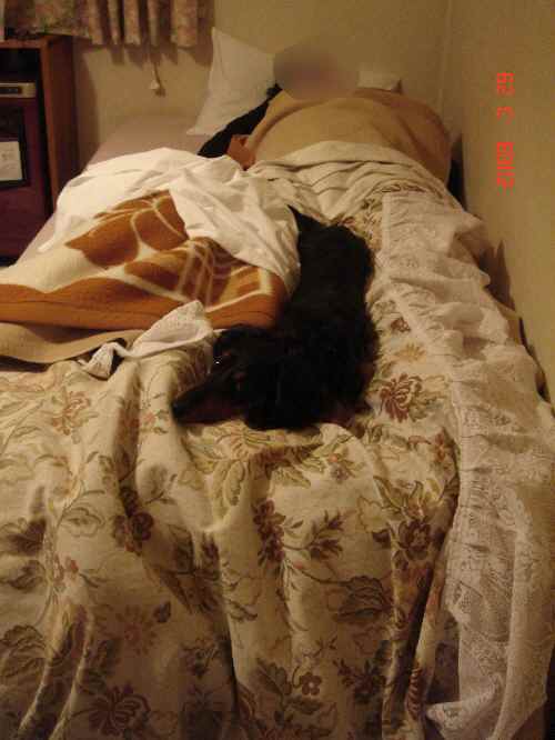 なぜかムンク私の方に来る~~~~~…しかも向きが私と直角に交わるように、ウナギのように伸びて寝てくれる…しくしくしくしく…。