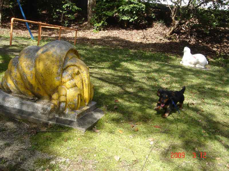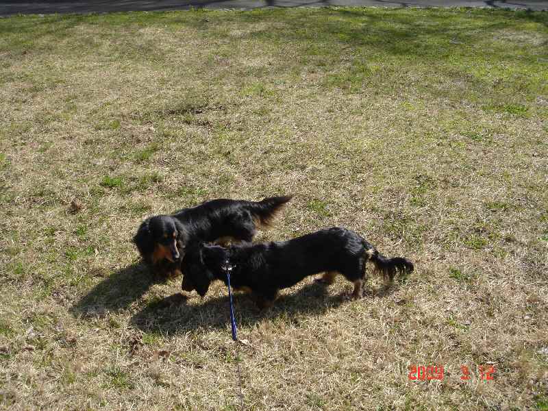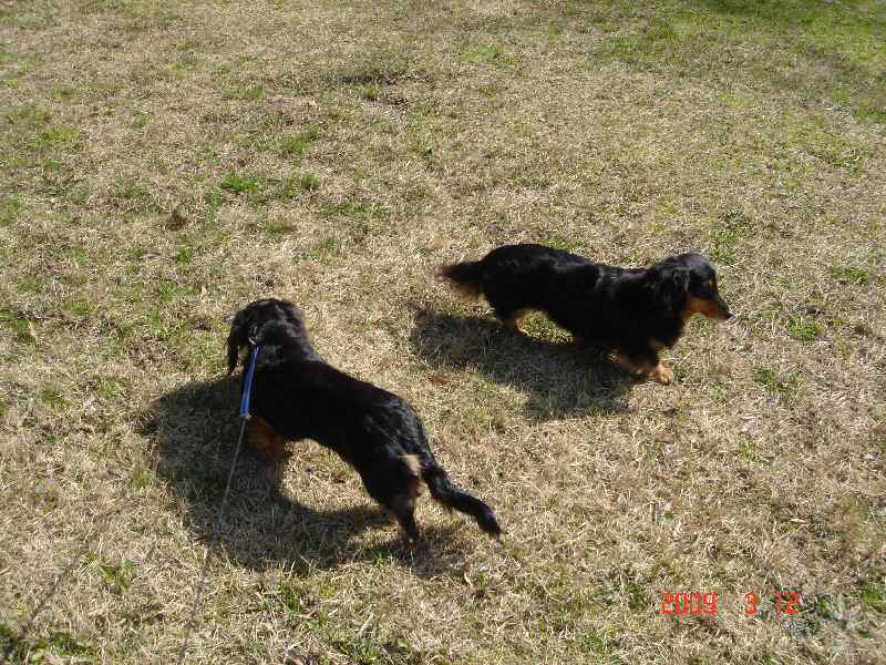 ノーリードで、とことこと飼い主さんからつかず離れずで歩いていました。