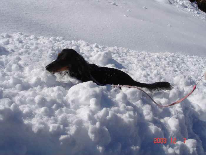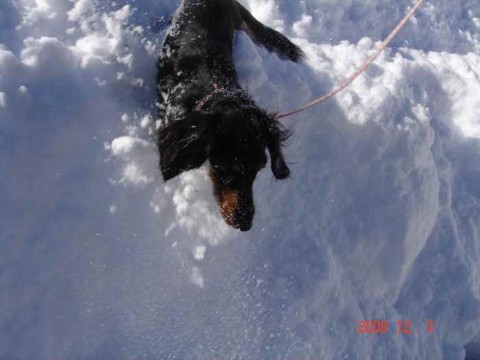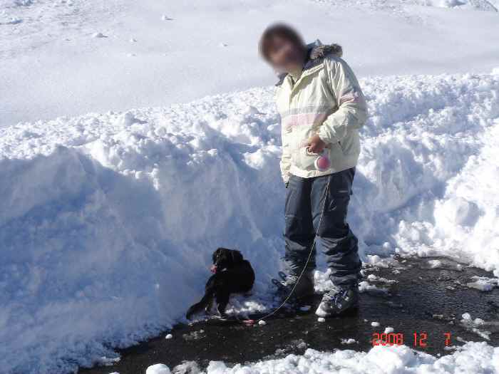 最初は新雪に投げ入れられると(酷)、すぐに戻ってきてしまいましたが、途中から雪を食べだしました。