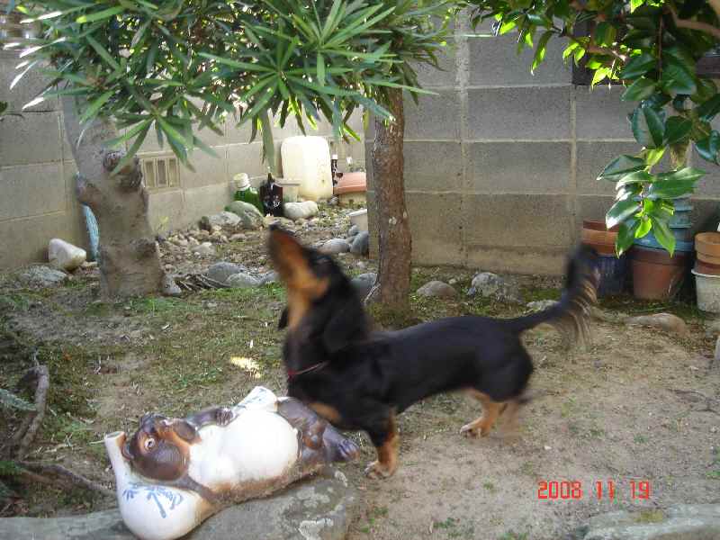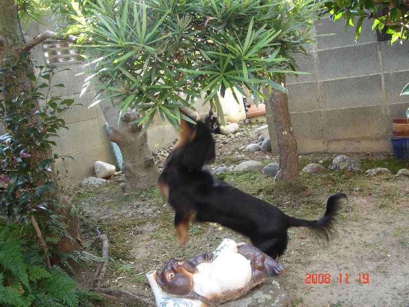 片手に黒い物体(ムンク)、片手に墓参用のバケツ(←以前お墓参りで借りたまま返さなかった(酷)。