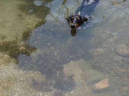 どうするのかな、と見守っていたのですが、休むことなく犬掻きを続け、しかもかなりのスピード!