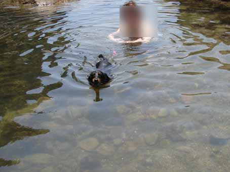 でも!抱っこしたまま水に入って、そこで手放すと、ちゃんと泳いだ!!!
