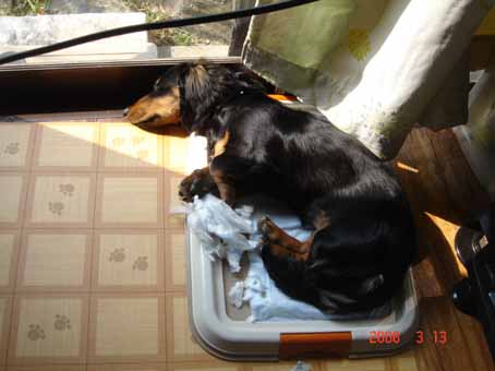 そして、プリンベッドに、カラーがつっかかりながらもなんとか乗り込み、そして寝てしまいました。