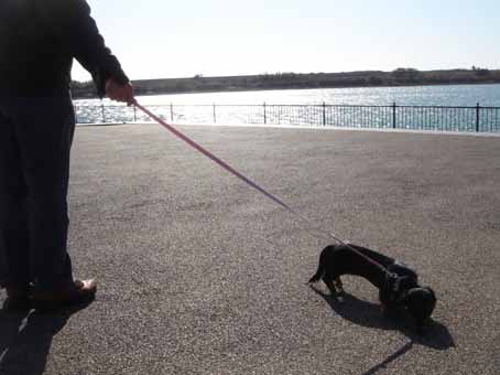 一応フレキシブルリードにしておいたのですが、そんなに離れることなく、大体は私の横に並んで歩いてくれているので、びよ~んと伸ばすことは、あんまり無かったですね~。