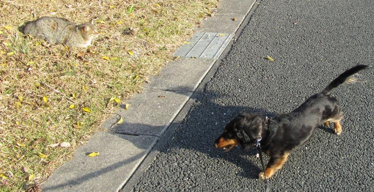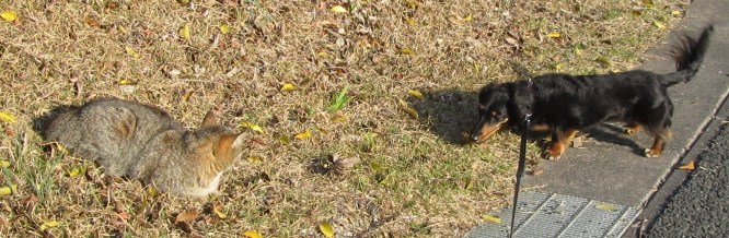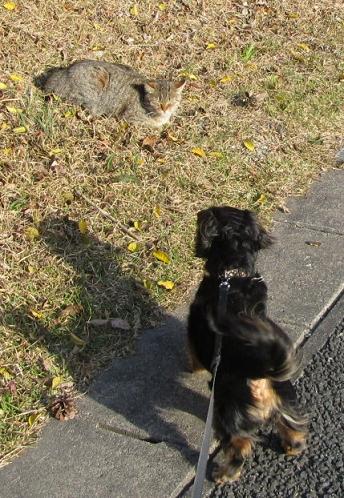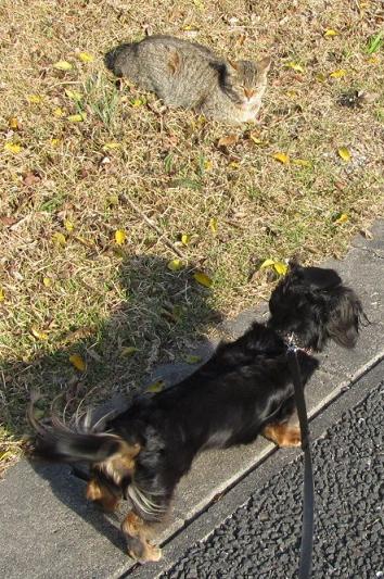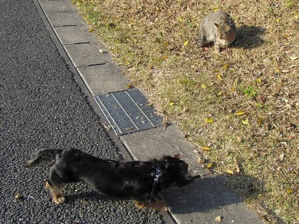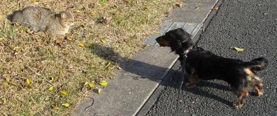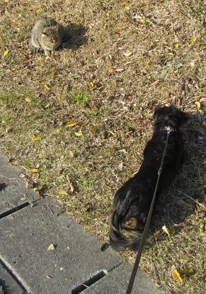 ムンクも、一定距離以上近づく勇気もなく、少し遠巻きに猫の周りをぐるぐるぐるぐる。