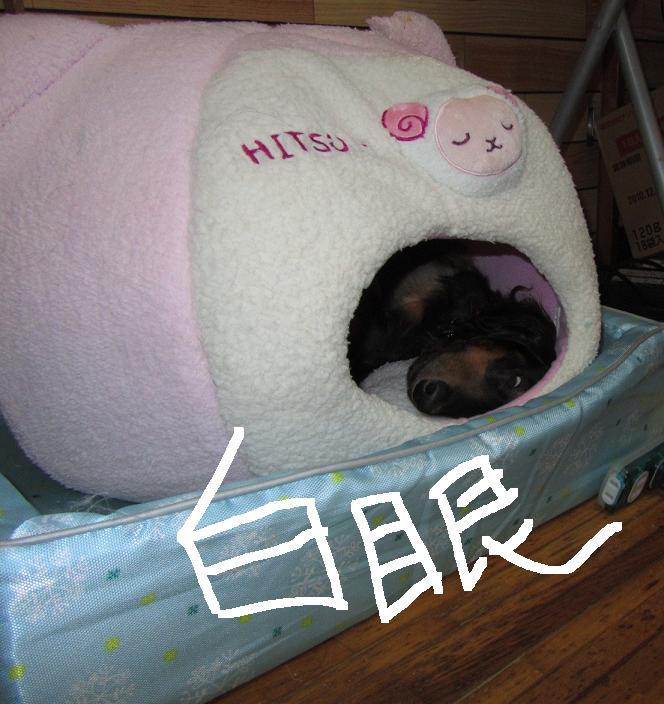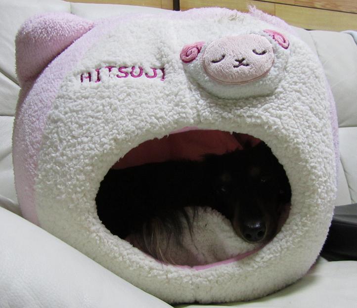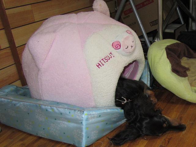 この前買って、なかなか入ってくれずにいた新しいベッド(かまくらタイプ)。