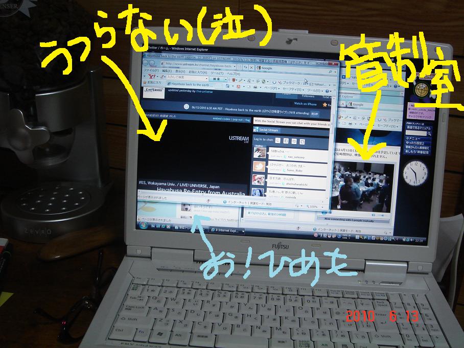 ネットで何箇所か中継が見られるのを知り、朝からスタンバイしてつないでいたのですが、22時半が近づくにつれて、だんだん、どんどん、物切れになり、固まりだし、