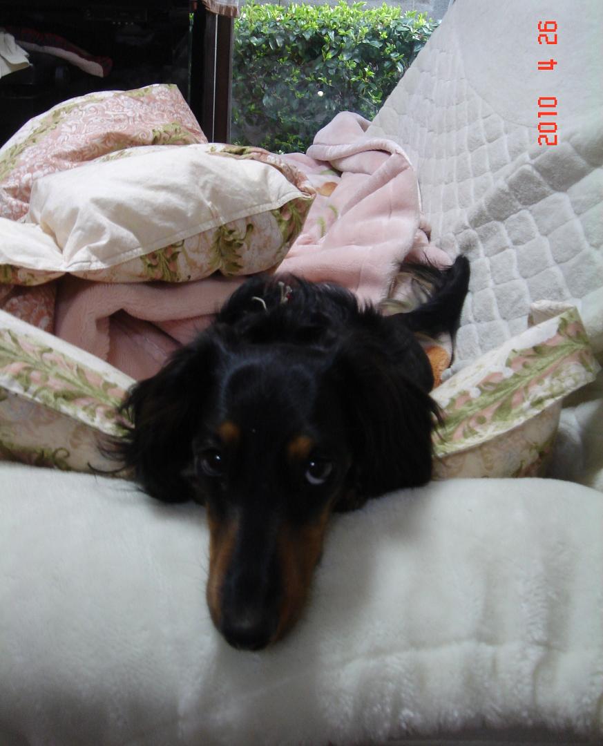 仕方がないので、窓をかなり大きめに開け、毛布をカーテンのようにして日を遮り、留守番させました。