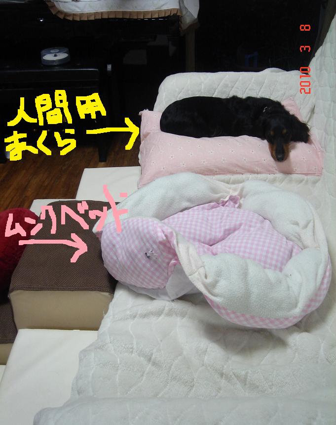 ←自分のベッドがあるのに、人間の枕に乗って寝るムンク。