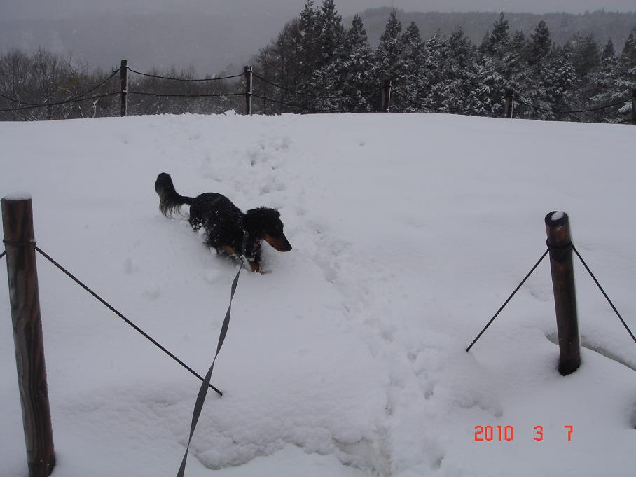 うさぎのように跳び跳ねながら、雪の中をずかずか走っていきます。