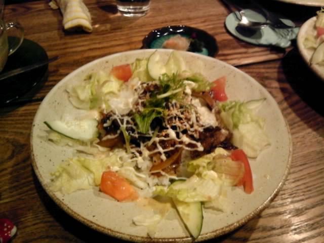 今日のお昼、研修会場近くの中華料理屋で焼きそば(揚げた麺にちゃんぽんの具がかかっている)。