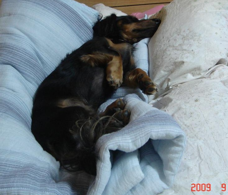今見たら、洗いたてのベッドパットつきのシーツにまたしてもおしっこをし、その上で寝ております…。