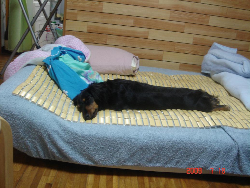 涼しい所に移動すること無く、夕べもエアコン嫌いの私の横で、あっつい中熟睡していましたよ。