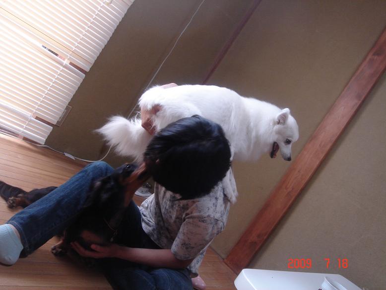 ムンクはもう構ってくれる爺やさん婆やさんにべったり~。